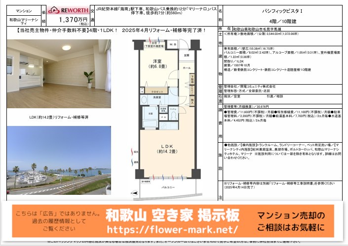 2025-04-20 | 4F 55.38 | 1LDK | 1,370 |