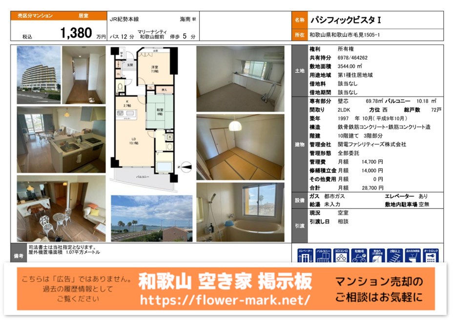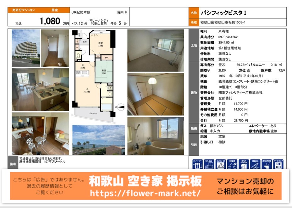 不動産ポータルサイトでの現在および過去の募集履歴です。